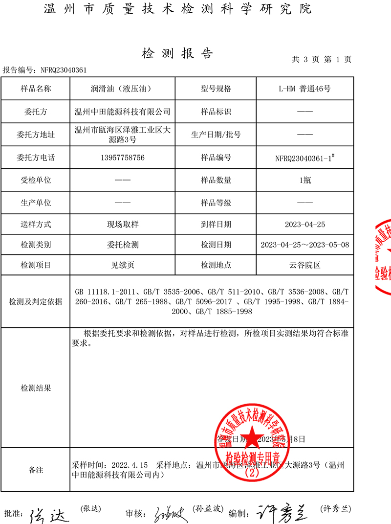 您當(dāng)前的位置:首頁 / 新聞動(dòng)態(tài) / 潤滑油(液壓油)檢測(cè)報(bào)告